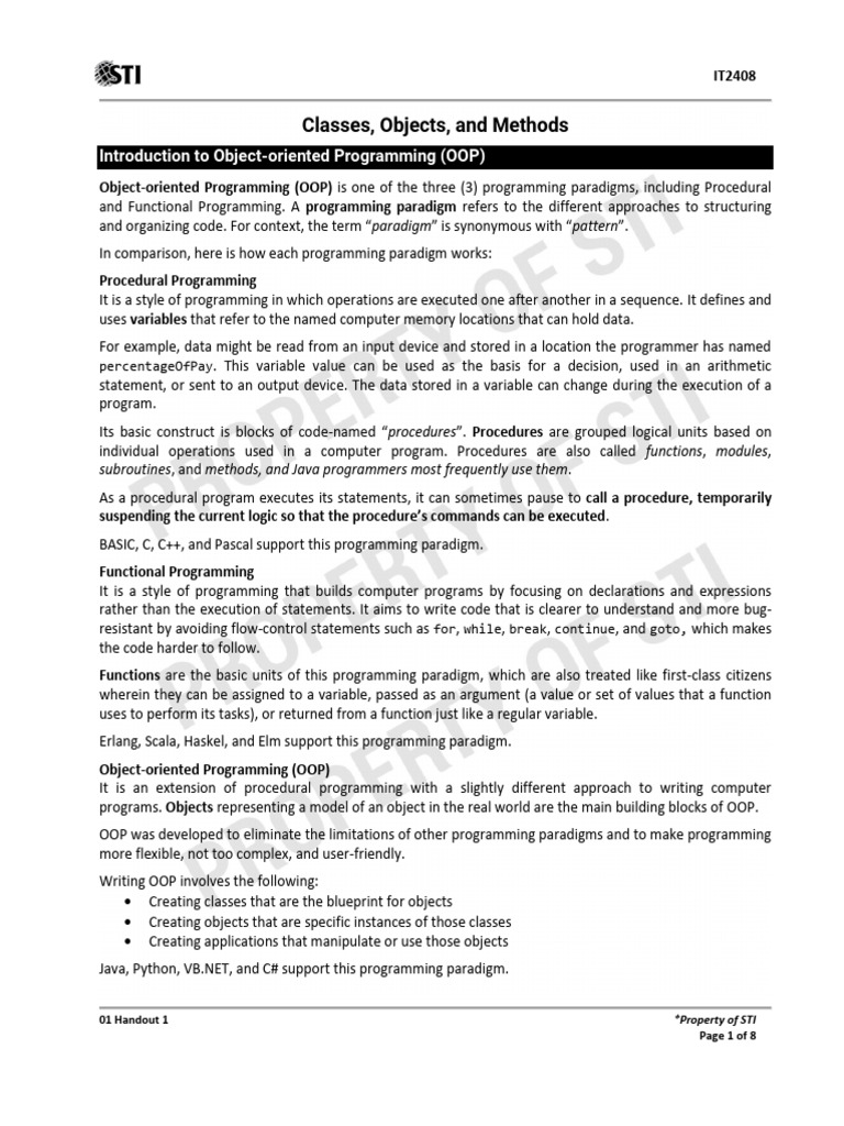 Object-oriented Programming (OOP) is one of the three (3) programming paradigms, including Procedural