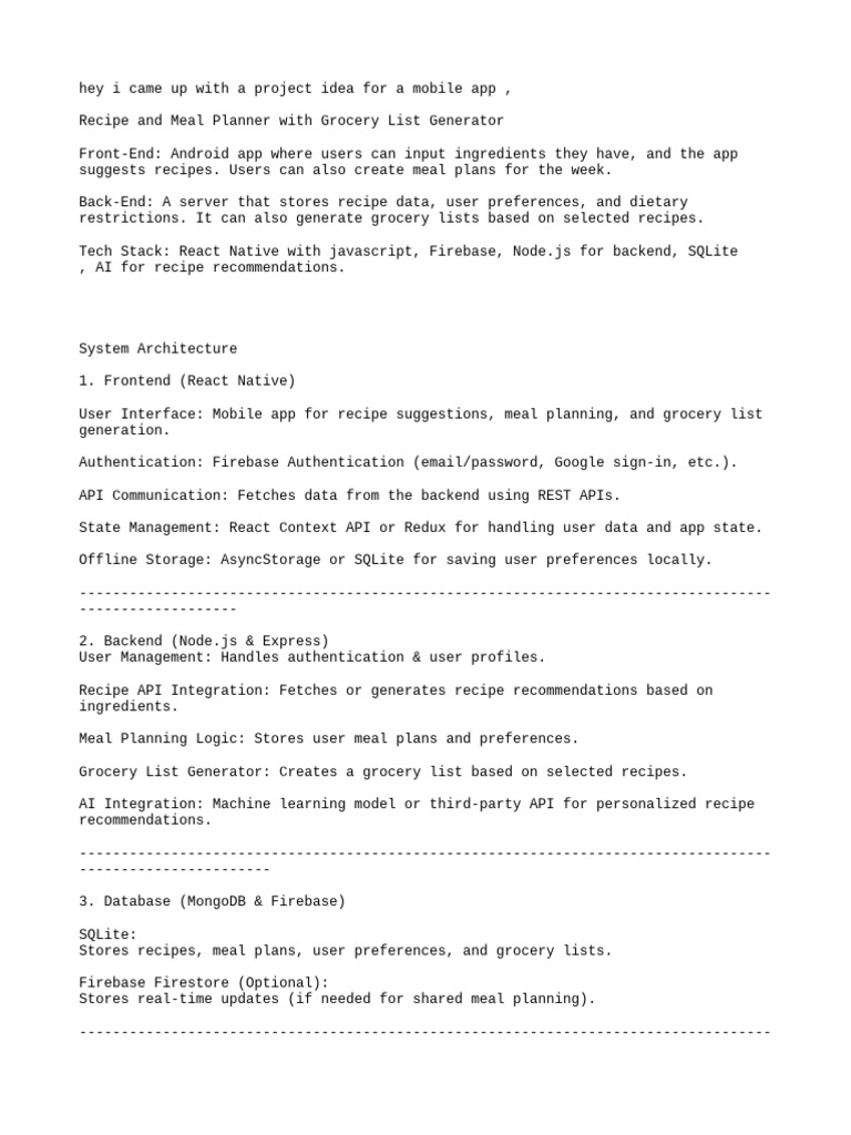 User Interface: Mobile app for recipe suggestions, meal planning, and grocery list