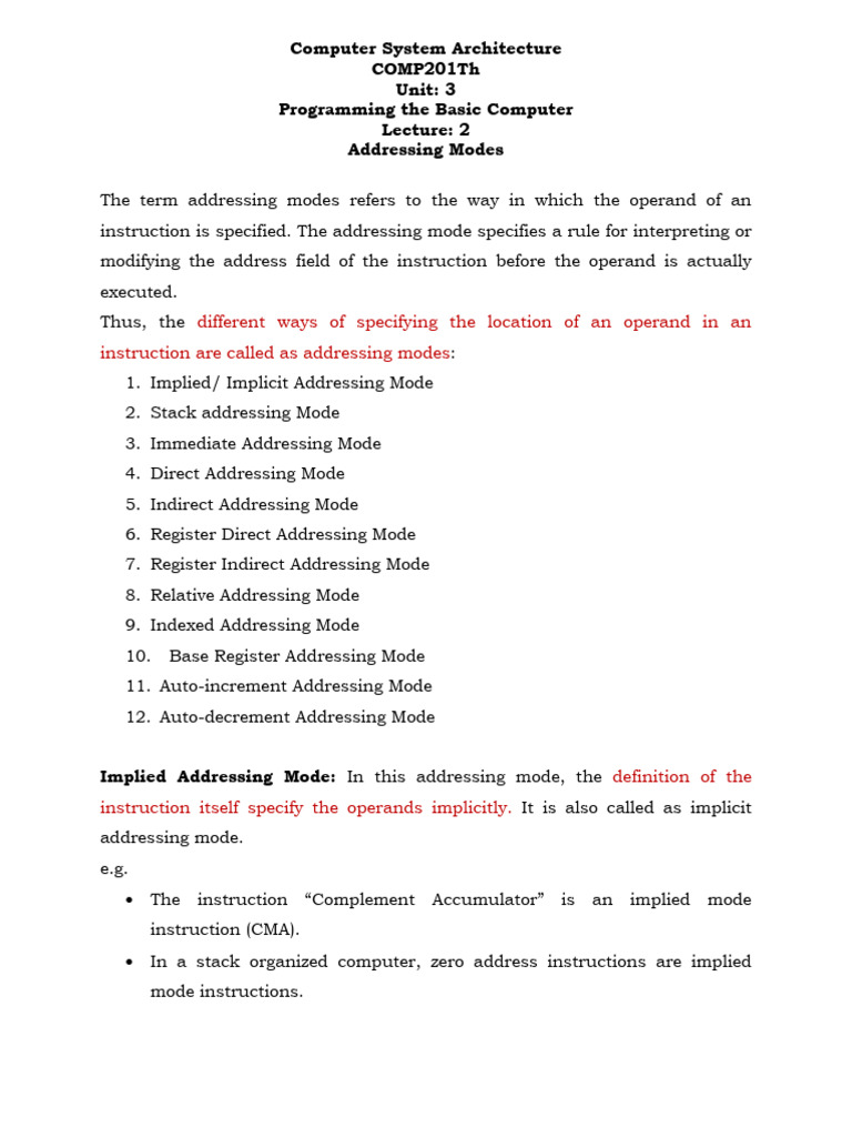 Implied Addressing Mode: In this addressing mode, the definition of the