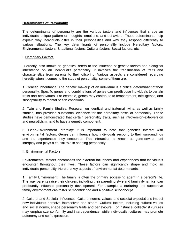 The determinants of personality are the various factors and influences that shape an
