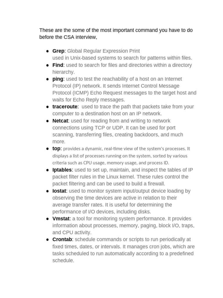154. Task: List out the important command and their purpose for