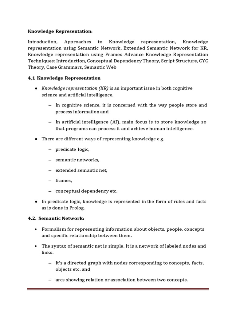 representation using Semantic Network, Extended Semantic Network for KR,