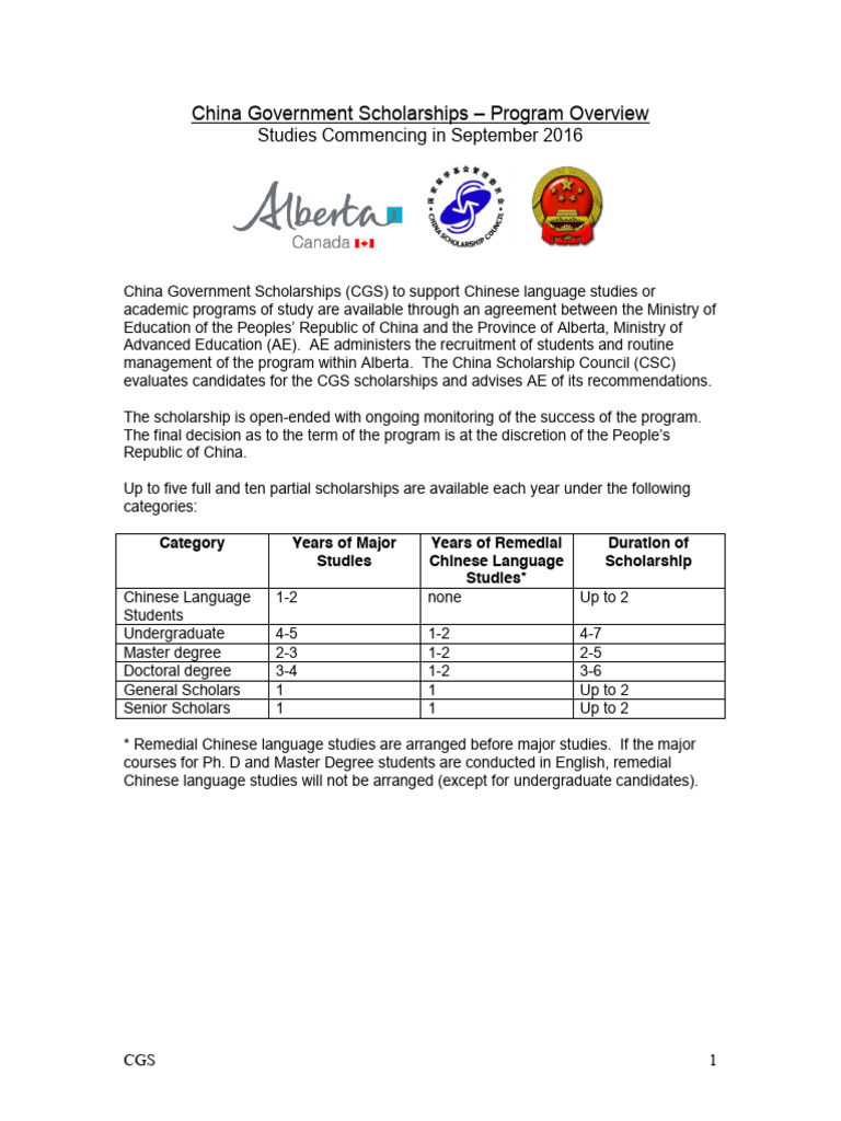 management of the program within Alberta. The China Scholarship Council (CSC)