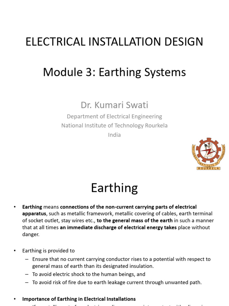 • Thus, Earthing ensures the safety of electrical equipment and human lives.