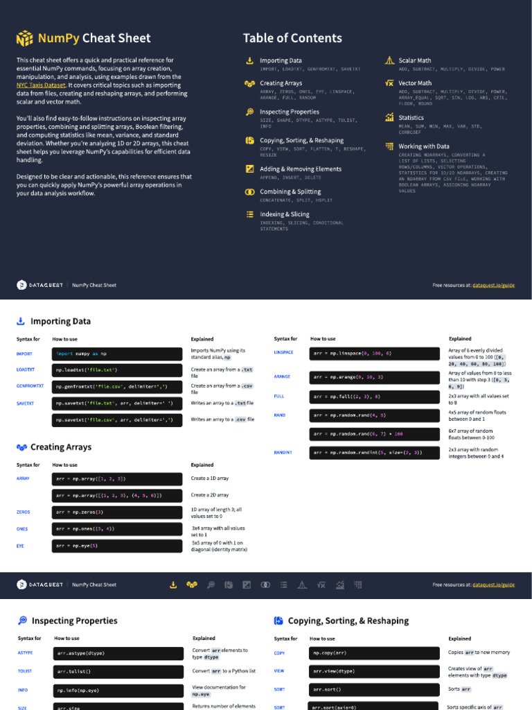 deviation. Whether you’re analyzing 1D or 2D arrays, this cheat
