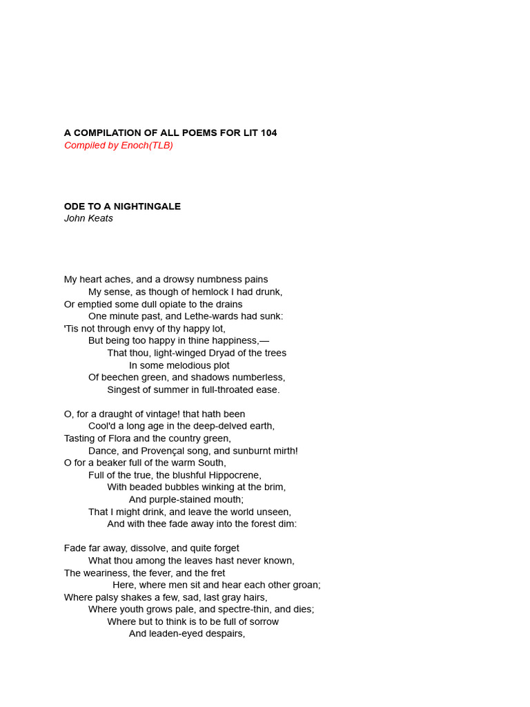 A COMPILATION OF ALL POEMS FOR LIT 104