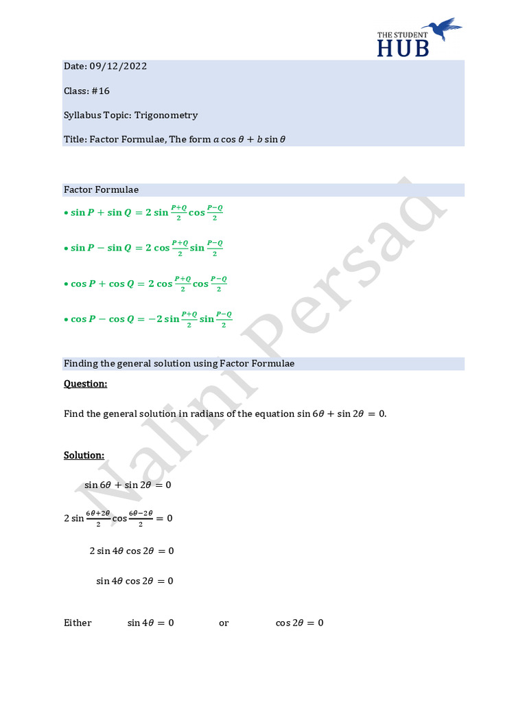 Title: Factor Formulae, The form 𝑎 cos 𝜃 + 𝑏 sin 𝜃