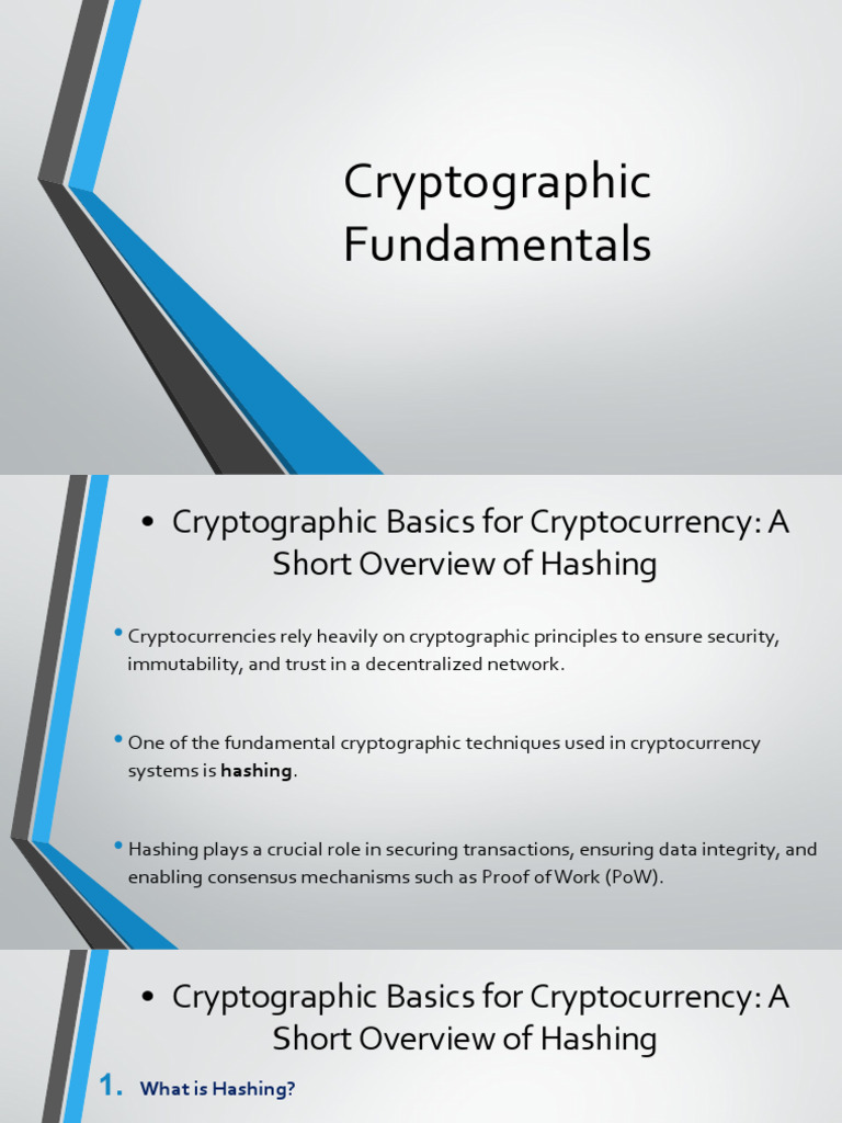 • One of the fundamental cryptographic techniques used in cryptocurrency