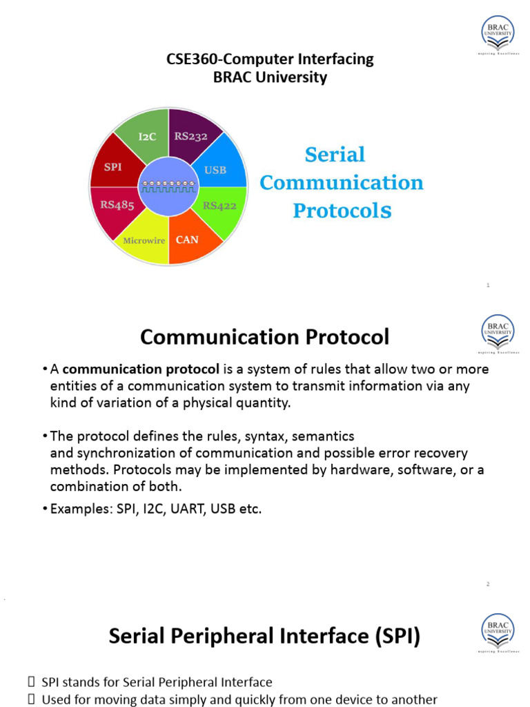 • Examples: SPI, I2C, UART, USB etc.