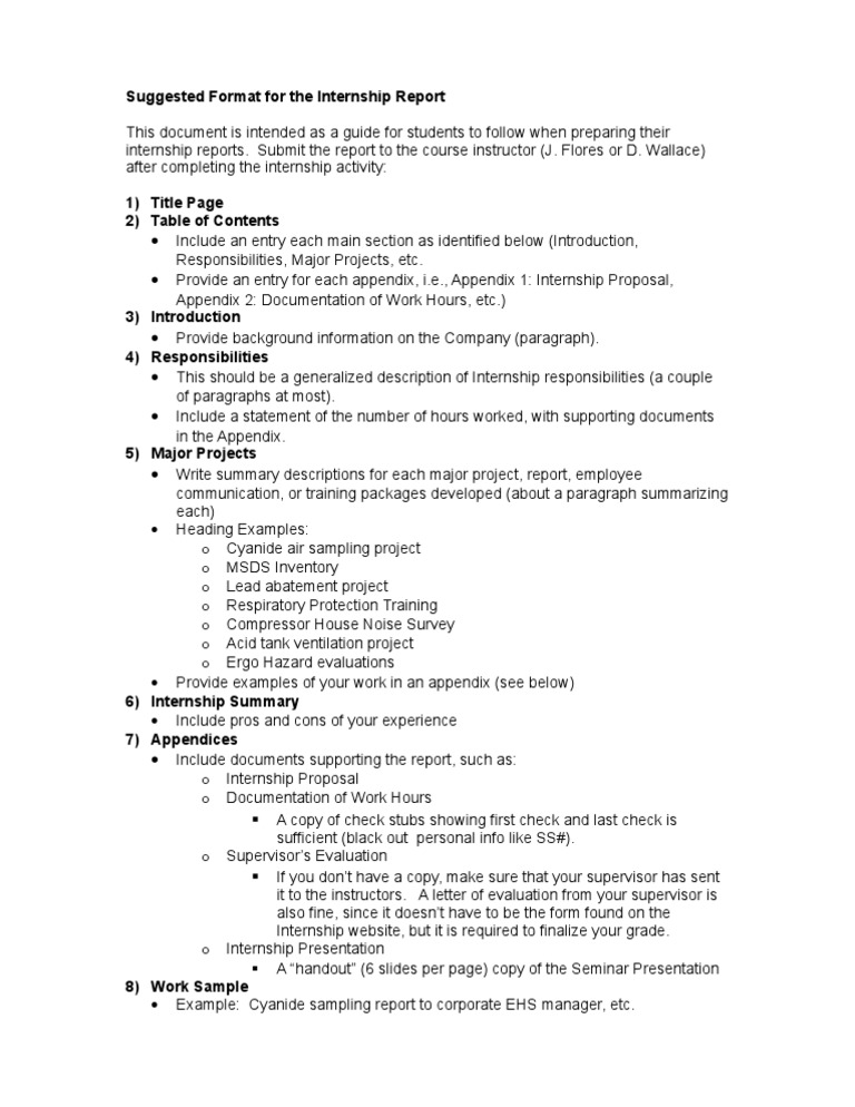internship reports. Submit the report to the course instructor (J. Flores or D. Wallace)