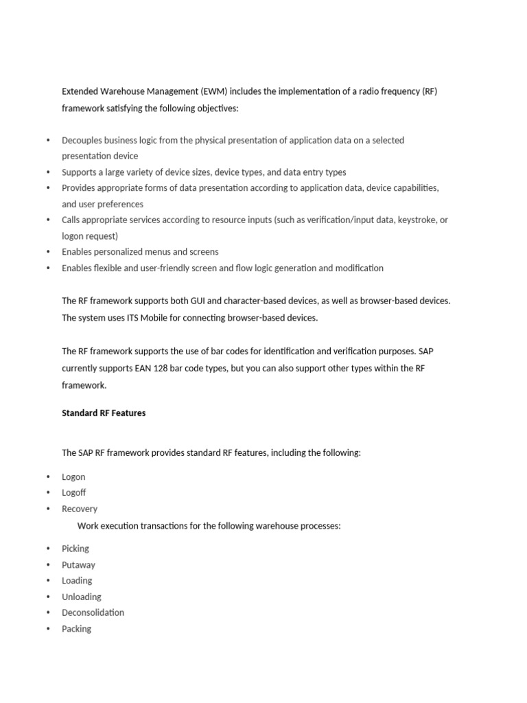 Extended Warehouse Management (EWM) includes the implementation of a radio frequency (RF)