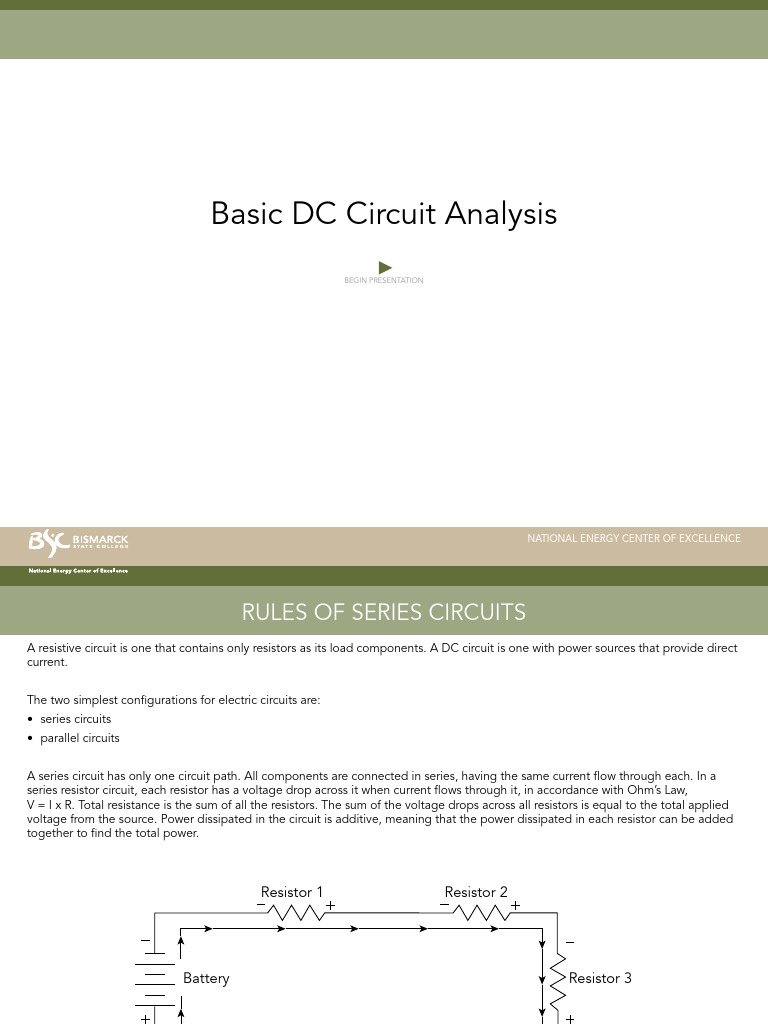 A resistive circuit is one that contains only resistors as its load components. A DC circuit is one with power sources that provide direct