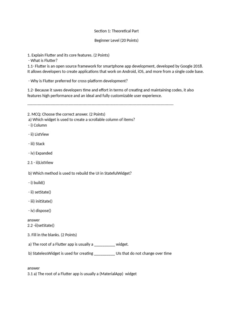 1. Explain Flutter and its core features. (2 Points)