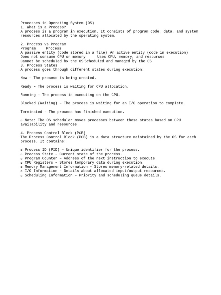 Blocked (Waiting) – The process is waiting for an I/O operation to complete.