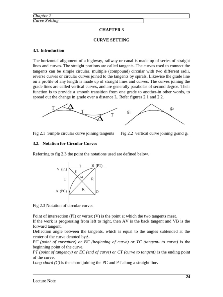 Fig 2.1 Simple circular curve joining tangents Fig 2.2 vertical curve joining g1and g2.