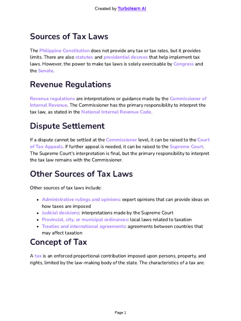 rights, limited by the law-making body of the state. The characteristics of a tax are: