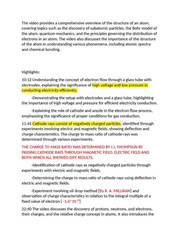 11:45 Cathode rays consist of negatively charged particles, identified through