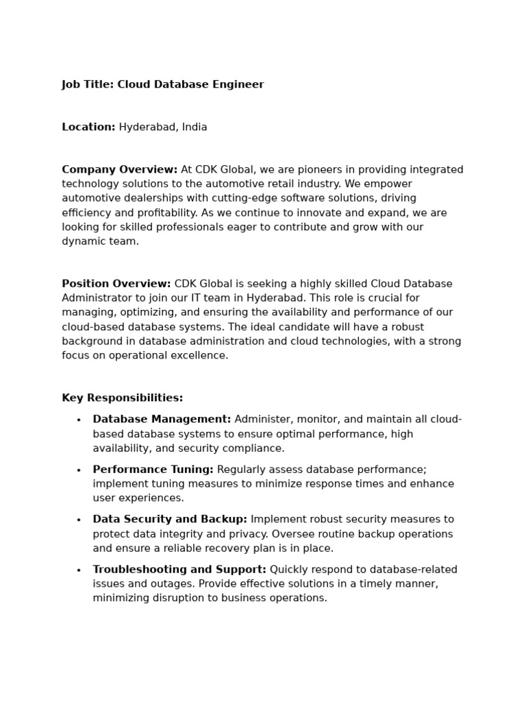 Position Overview: CDK Global is seeking a highly skilled Cloud Database
