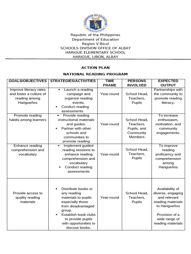 read at least 10 books to practice reading Year-round School Head, love for reading.