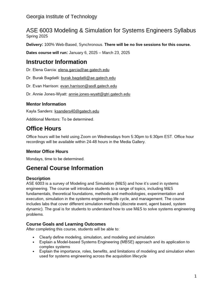 ASE 6003 Modeling & Simulation for Systems Engineers Syllabus