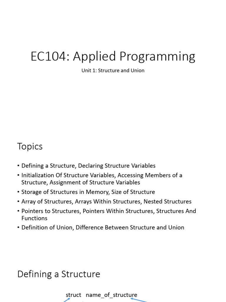 • Array of Structures, Arrays Within Structures, Nested Structures