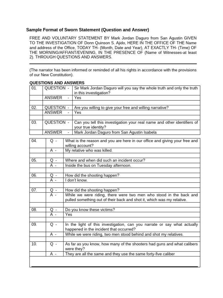 FREE AND VOLUNTARY STATEMENT BY Mark Jordan Daguro from San Agustin GIVEN