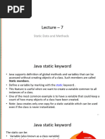 • Shared memory allocation: Static variables and methods are allocated memory space only
