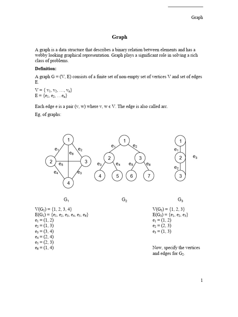 A graph G = (V, E) consists of a finite set of non-empty set of vertices V and set of edges
