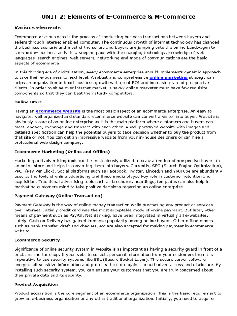 UNIT 2: Elements of E-Commerce & M-Commerce