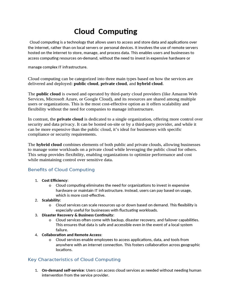 o Cloud services can scale resources up or down based on demand. This flexibility is