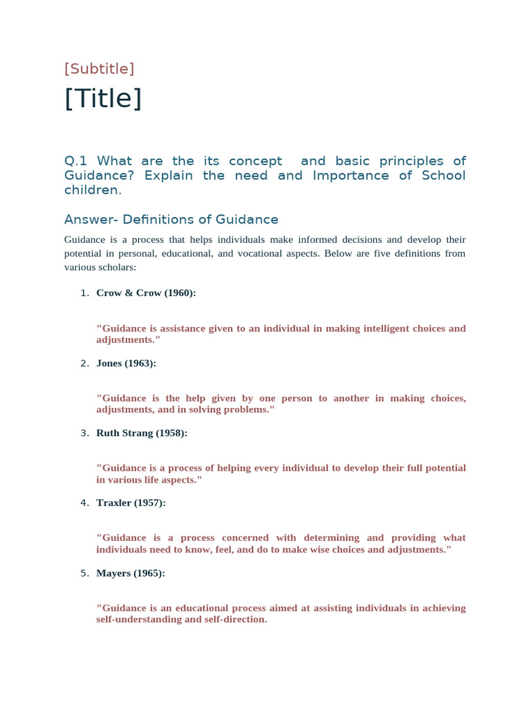 Guidance is a process that helps individuals make informed decisions and develop their