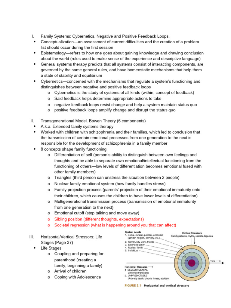 I. Family Systems: Cybernetics, Negative and Positive Feedback Loops.