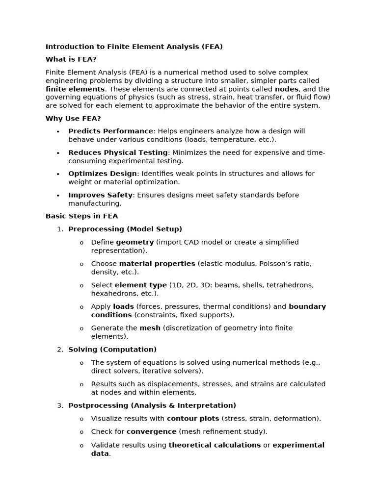 Finite Element Analysis (FEA) is a numerical method used to solve complex
