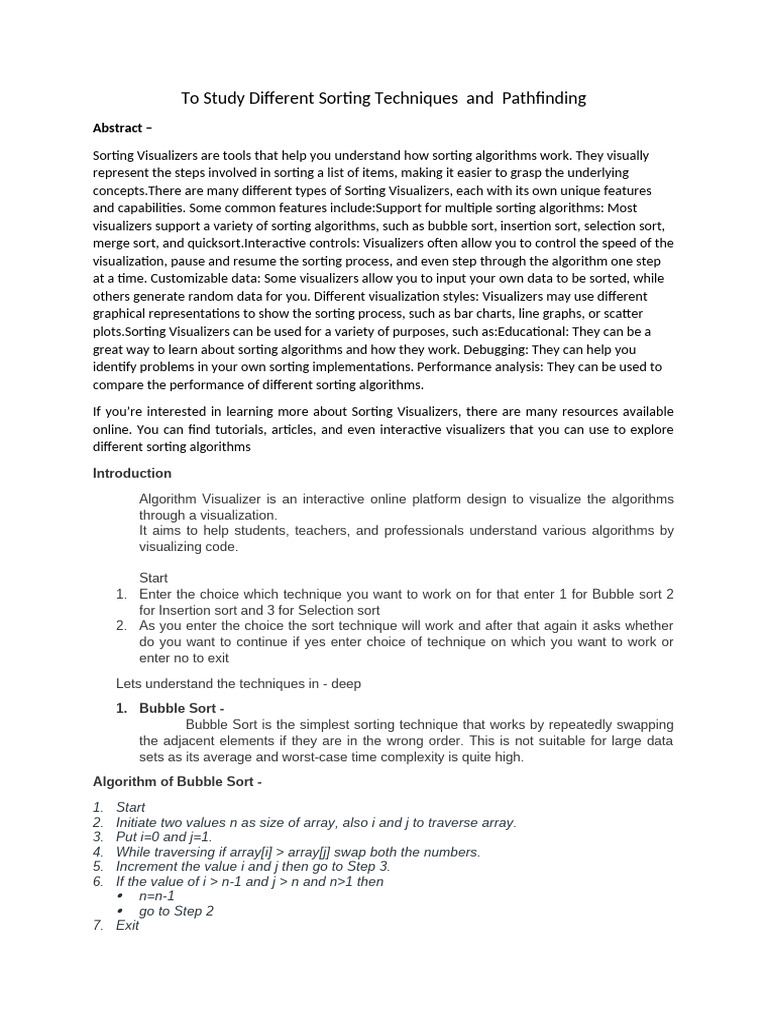 To Study Different Sorting Techniques and Pathfinding