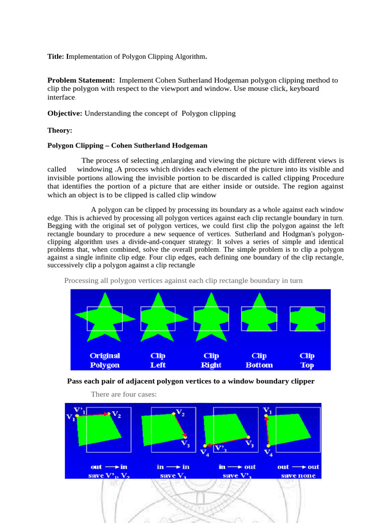 Polygon Clipping – Cohen Sutherland Hodgeman