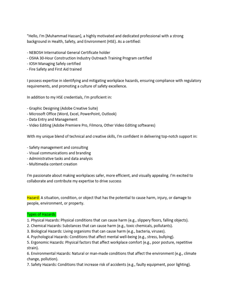 "Hello, I'm [Muhammad Hassan], a highly motivated and dedicated professional with a strong