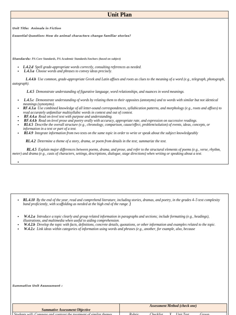 Students will- Compare and contrast the treatment of similar themes ____ Rubric ___ Checklist __X__ Unit Test ____ Group
