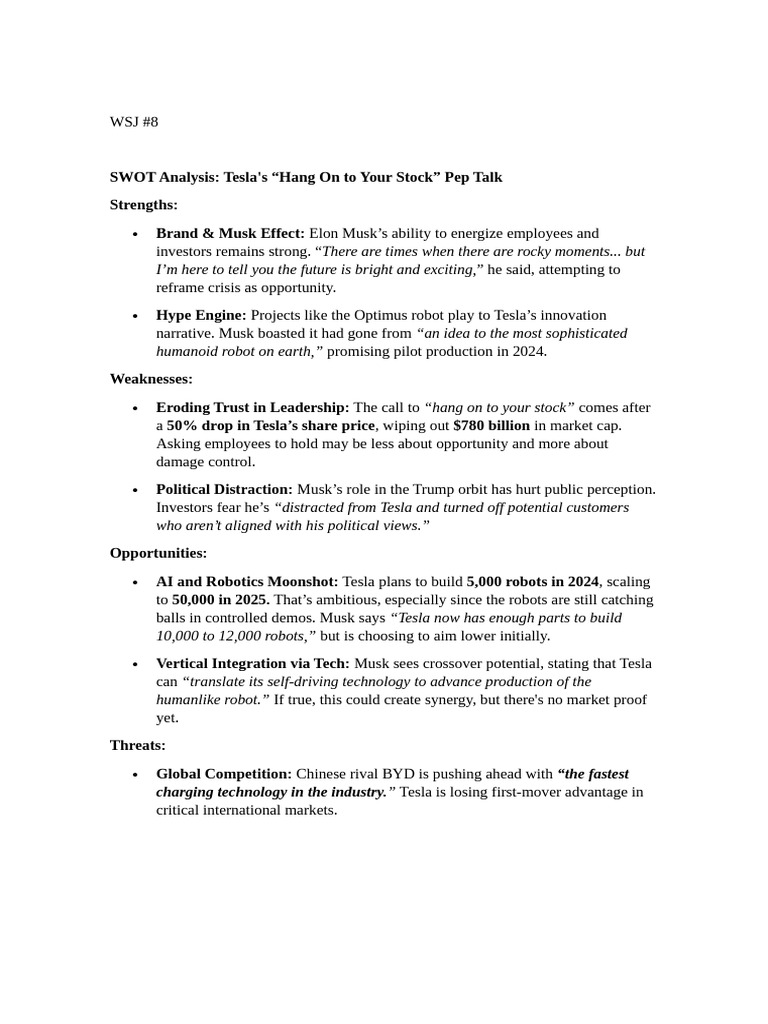 SWOT Analysis: Tesla's “Hang On to Your Stock” Pep Talk