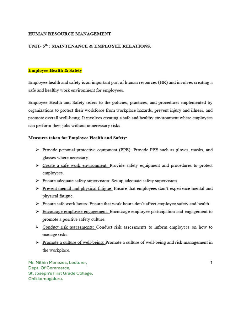 UNIT- 5th : MAINTENANCE & EMPLOYEE RELATIONS.