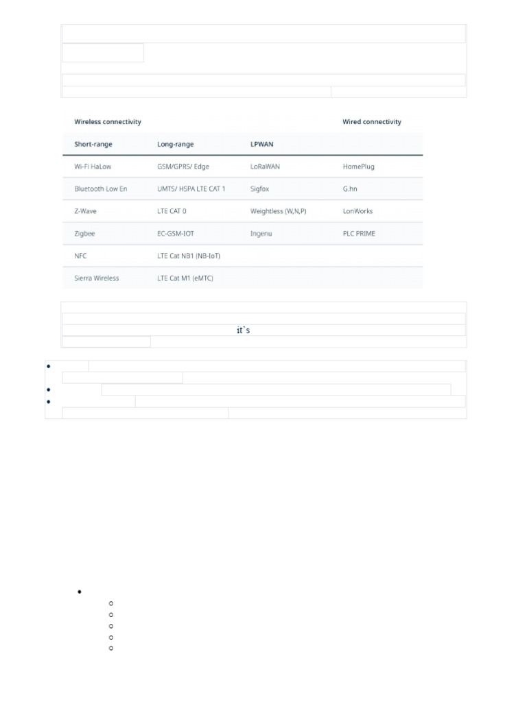 Internet of Things connectivity is represented by two categories - wireless and wired solutions, which