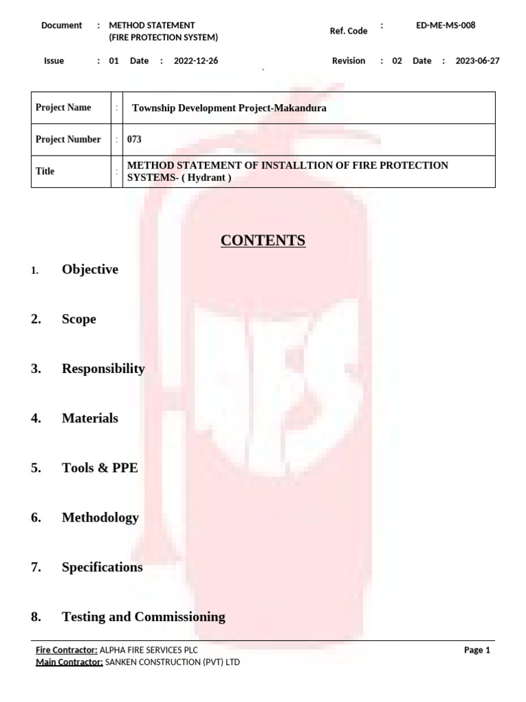 METHOD STATEMENT OF INSTALLTION OF FIRE PROTECTION
