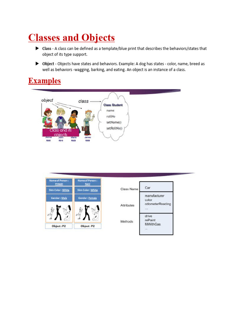 ▶ Class - A class can be defined as a template/blue print that describes the behaviors/states that