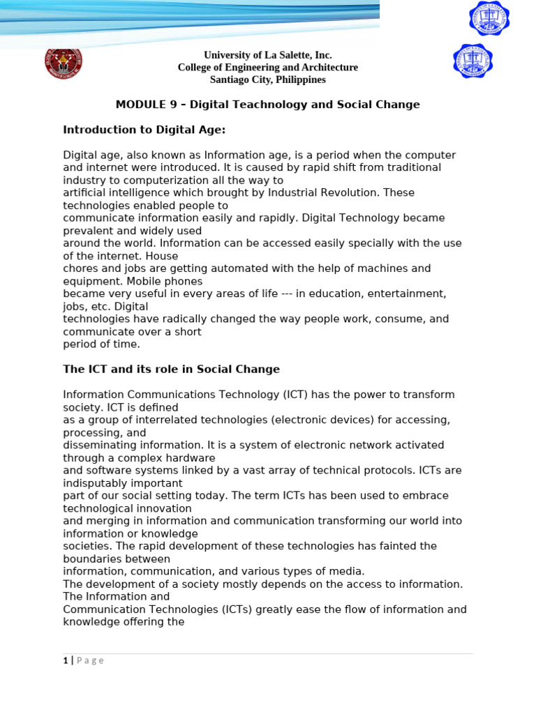 MODULE 9 – Digital Teachnology and Social Change