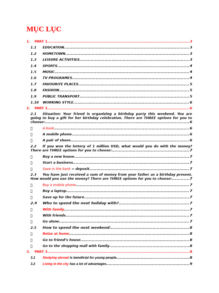 Go to the shopping mall with family.........................................................8