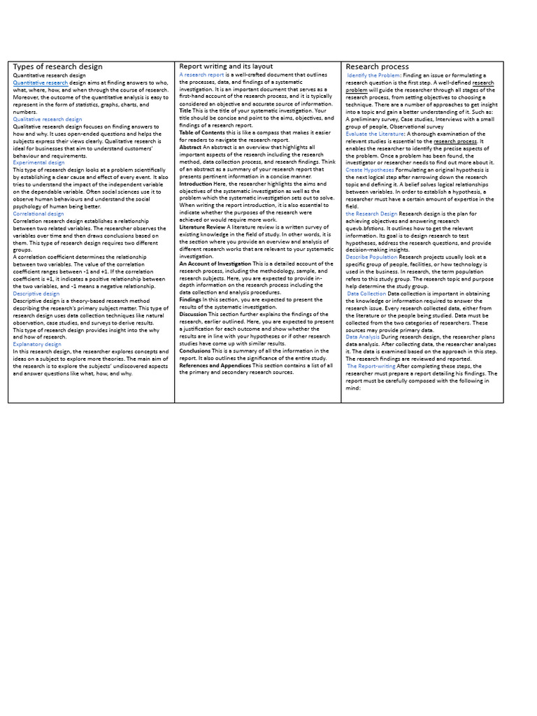 Quantitative research design A research report is a well-crafted document that outlines Identify the Problem: Finding an issue or formulating a