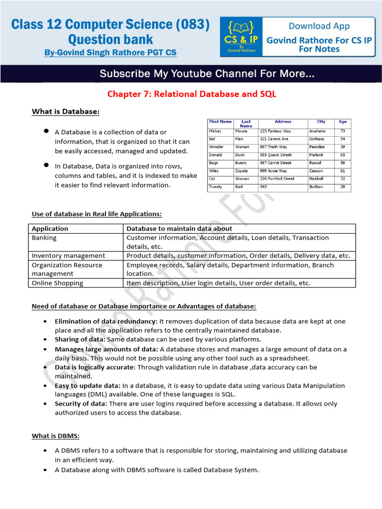 Example of DBMS software are Oracle, MS SQL Server, MS Access, Paradox, DB2 and MySQL