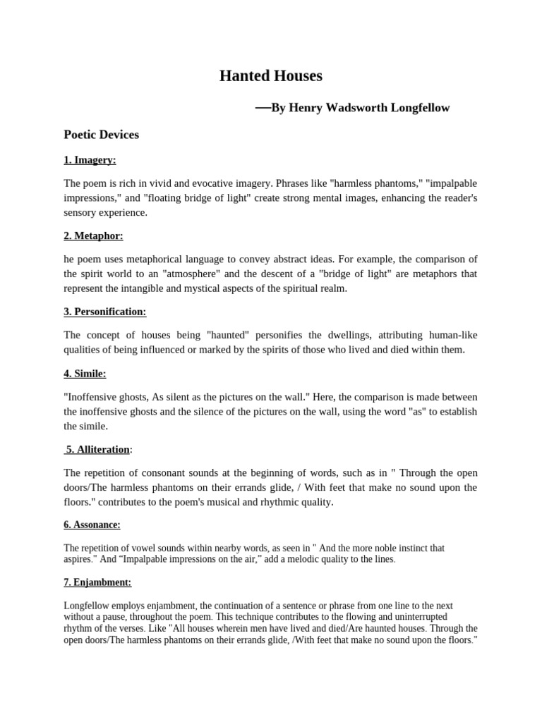 Q2. Write a critical analysis of the poem, ' Haunted Houses ' by H W Longfellow. In what