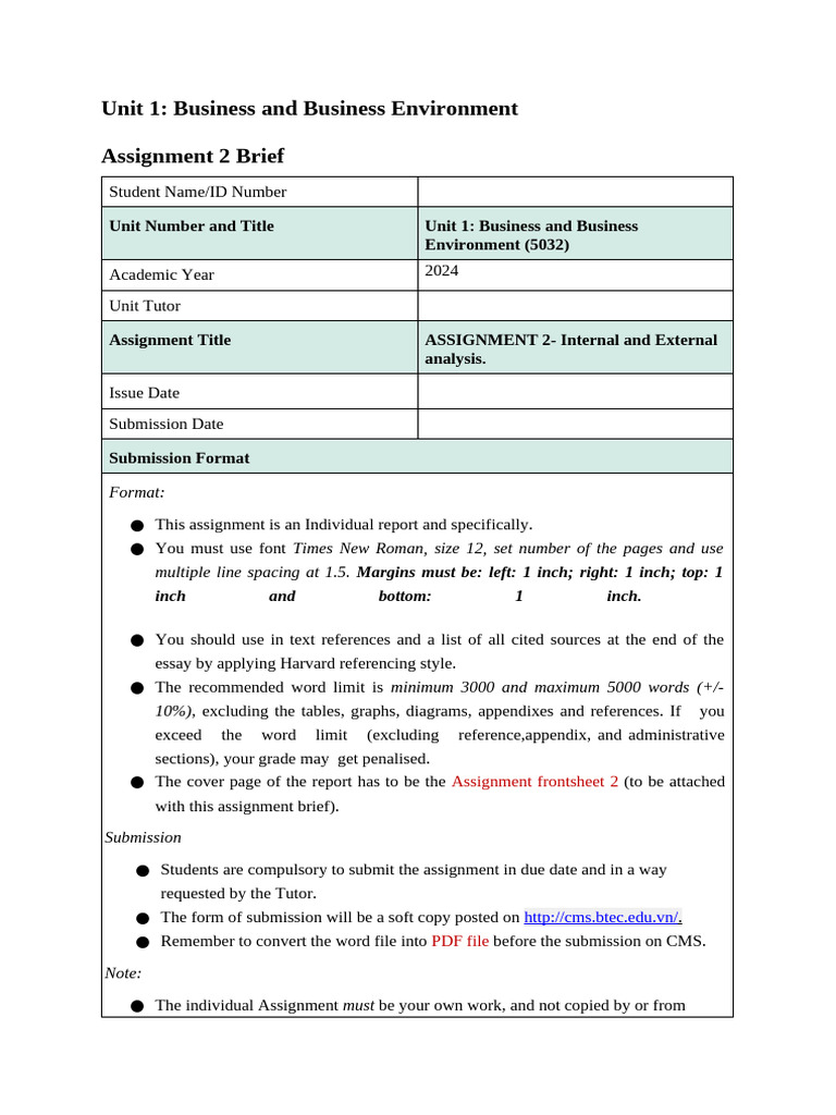 ● The form of submission will be a soft copy posted on http://cms.btec.edu.vn/.