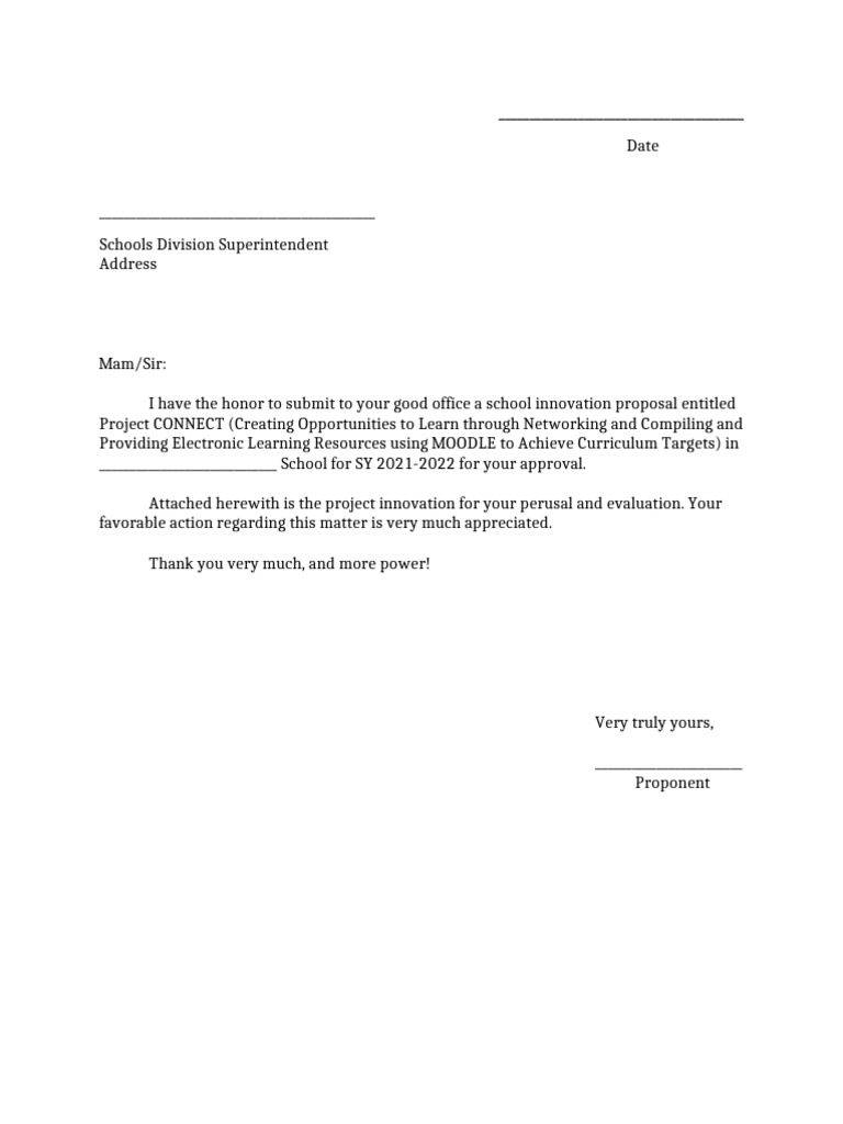 ________________________________ School proposes a Project CONNECT (Creating Opportunities