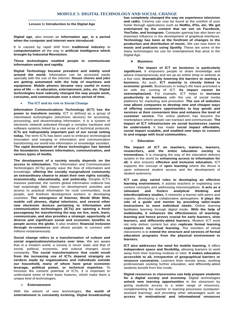 MODULE 5: DIGITAL TECHNOLOGY AND SOCIAL CHANGE
